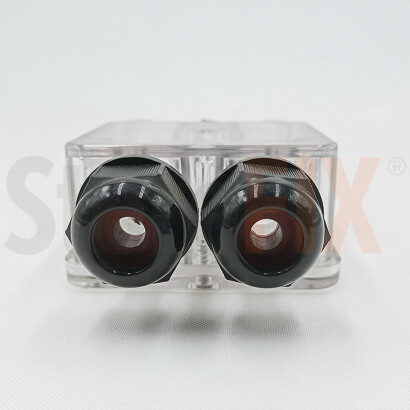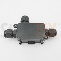 Caja de derivación hermética fabricada en plástico ABS negro anti llama, con certificación IP68 que garantiza máxima protección frente al agua, polvo y humedad.