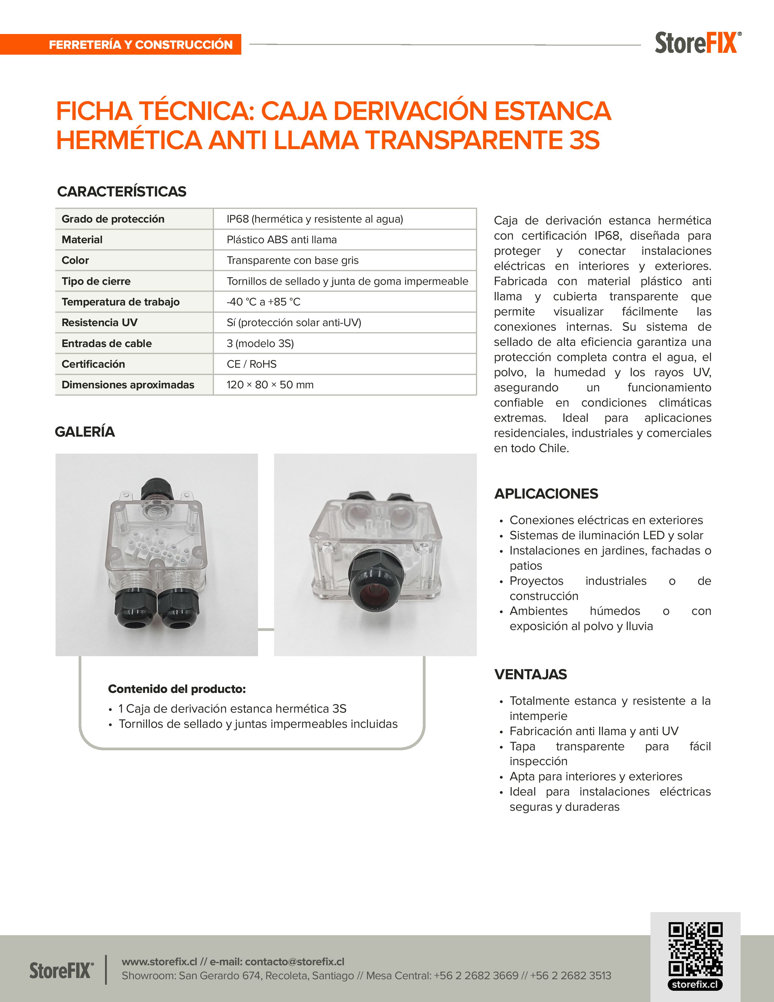 La Caja de Derivación Estanca Hermética Anti Llama Transparente 3S de StoreFIX ofrece máxima protección para conexiones eléctricas en entornos exigentes.