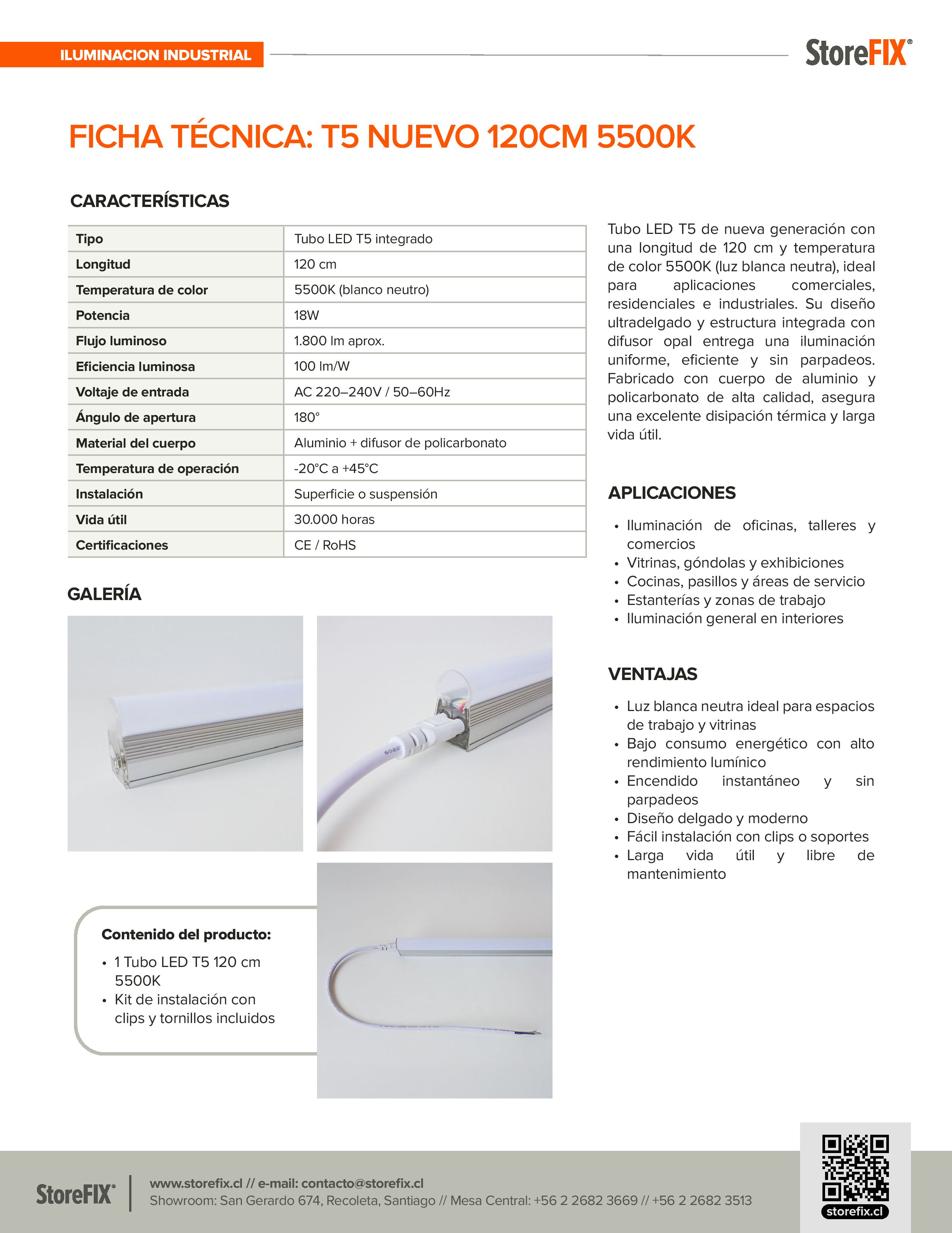 El Tubo LED T5 de 120 cm y 5500 K de StoreFIX ofrece una iluminación blanca neutra, uniforme y sin parpadeos.