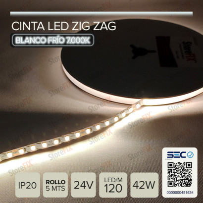 La Cinta LED Zig Zag 8.4W 24V con chip SMD2835 es una opción versátil para iluminación decorativa interior. Su diseño en forma de zigzag permite adaptarse a curvas, mobiliario y estructuras irregulares para crear efectos creativos y personalizados.