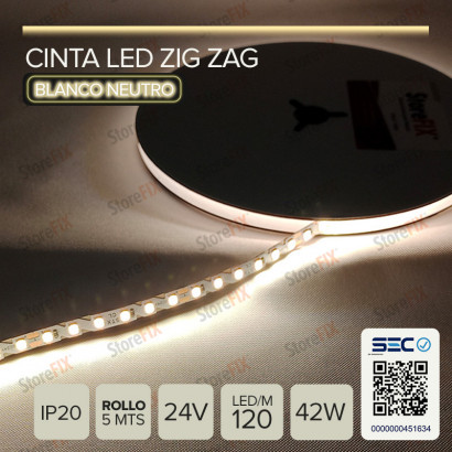 La Cinta LED Zig Zag 8.4W 24V con chip SMD2835 es una opción versátil para iluminación decorativa interior. Su diseño en forma de zigzag permite adaptarse a curvas, mobiliario y estructuras irregulares para crear efectos creativos y personalizados.
