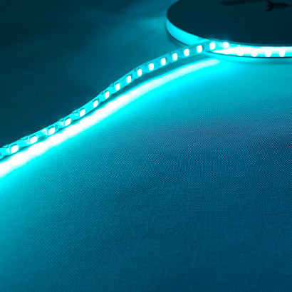 Cuenta con 120 LED por metro y un consumo de 8,4W/m, ideal para proyectos residenciales, comerciales o publicitarios.
