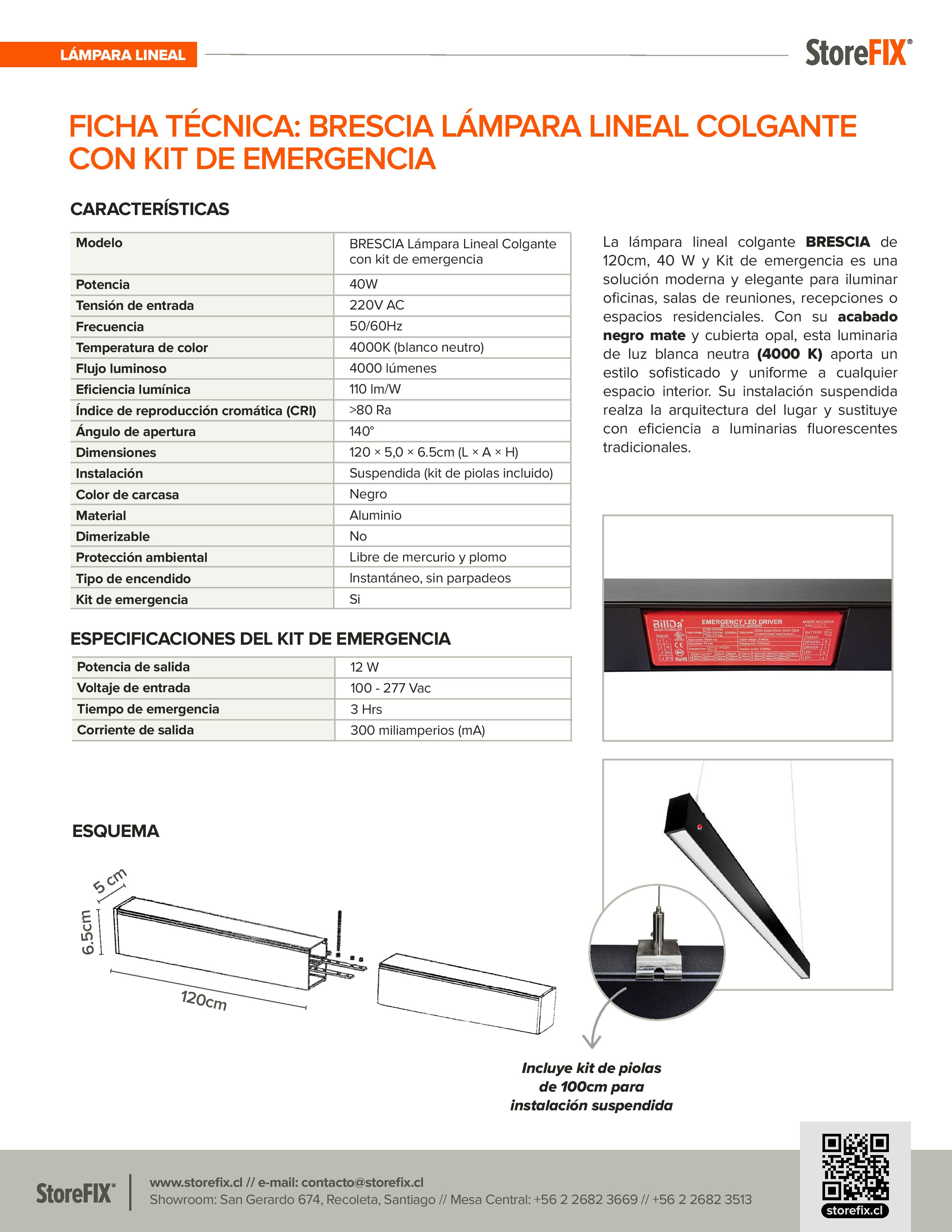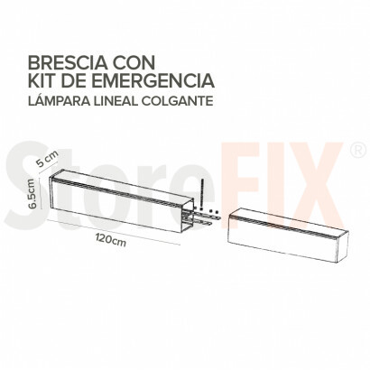 La lámpara lineal colgante BRESCIA de StoreFIX con kit de emergencia combina diseño moderno, eficiencia y seguridad.