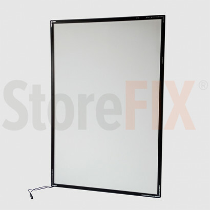 Con un elegante acabado en color plateado, este panel permite insertar y extraer hojas de papel backlight film, logrando un efecto luminoso impactante.