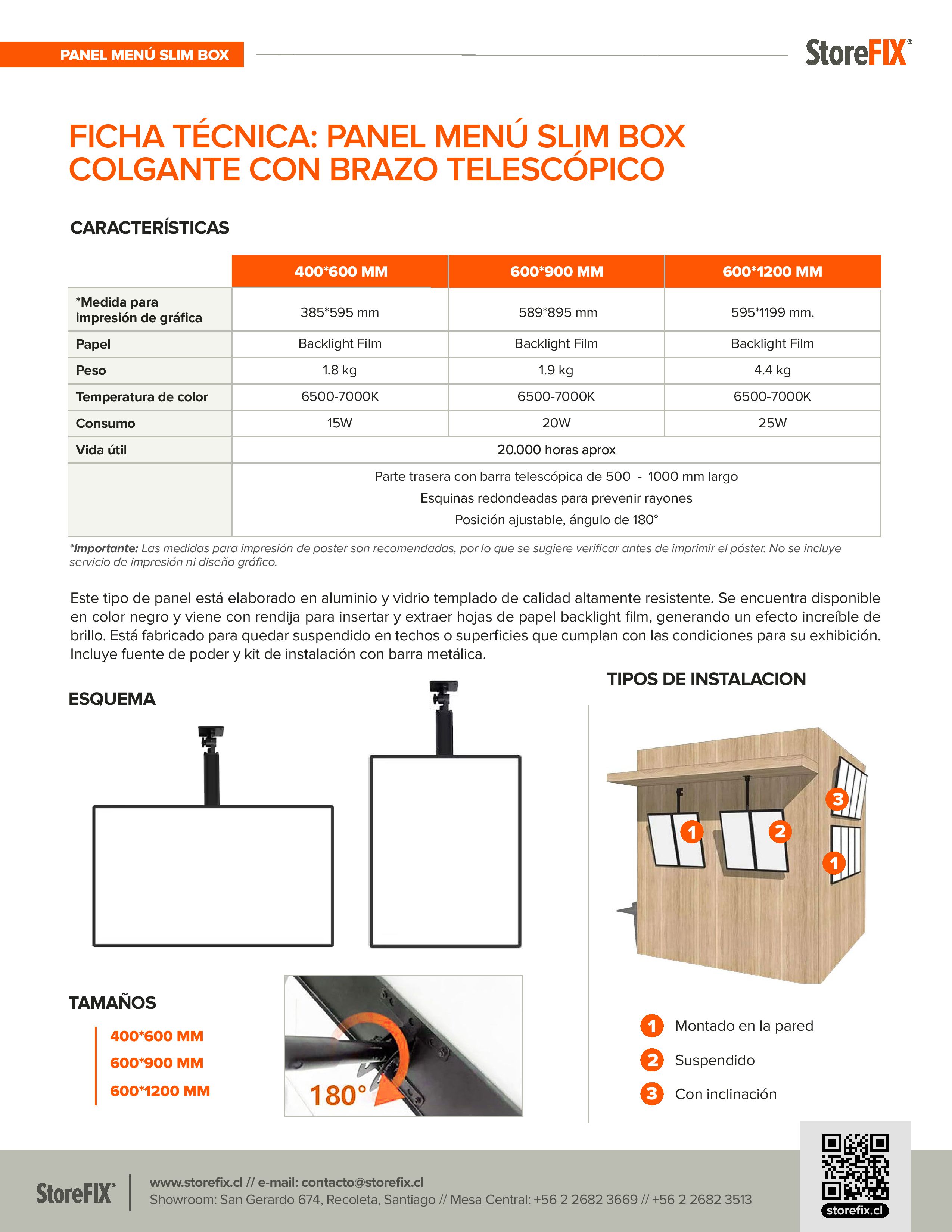Ideal para resaltar menús y anuncios, se suspende fácilmente en espacios techados. Incluye una fuente de poder y un kit de instalación completo con piola. Perfecto para negocios que buscan destacar visualmente su oferta.
