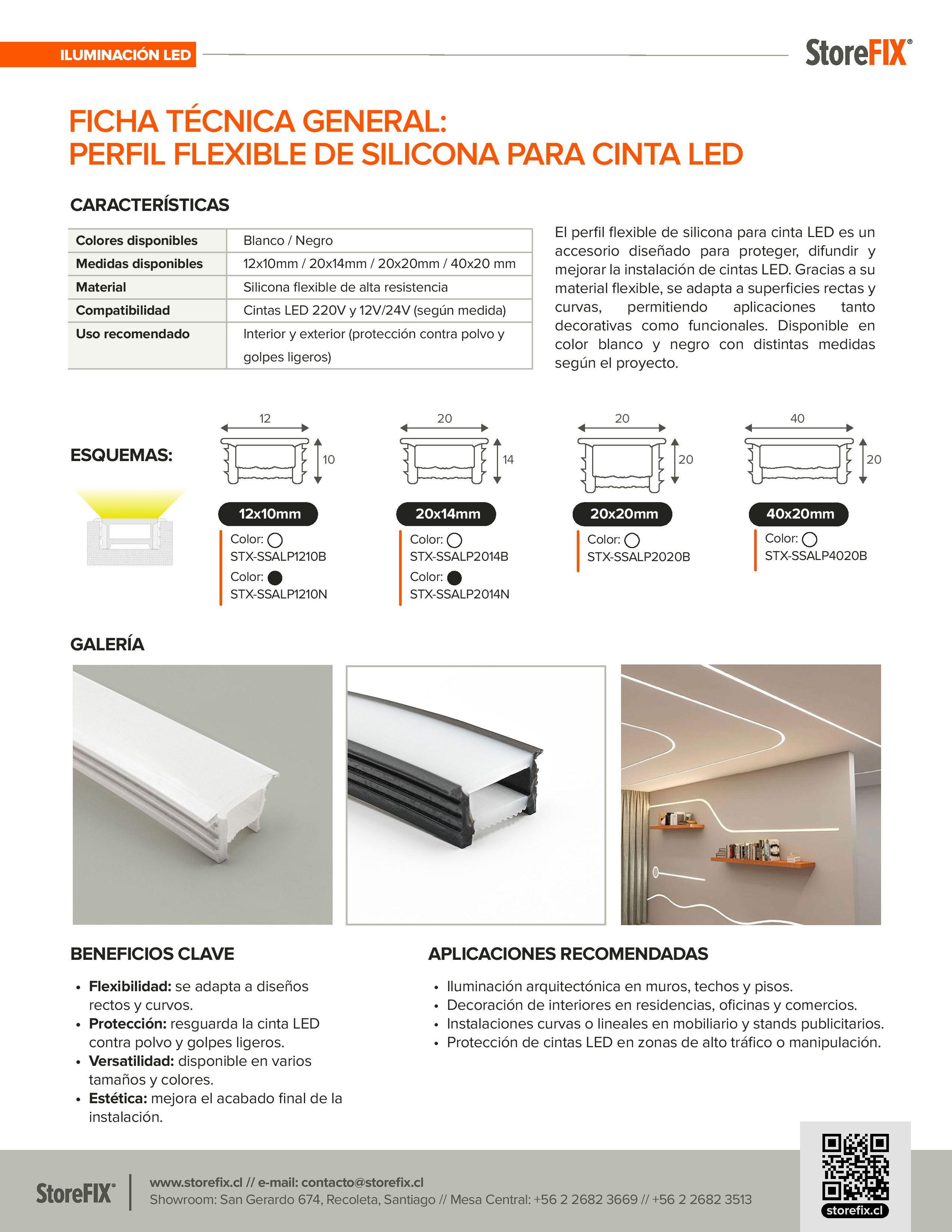 El perfil flexible de silicona para cinta LED de StoreFIX es un accesorio diseñado para proteger, difundir y mejorar la instalación de tiras LED. Gracias a su material resistente y flexible, se adapta tanto a superficies rectas como curvas, permitiendo aplicaciones decorativas y funcionales en interiores o exteriores.