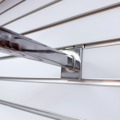Las gancheras metálicas cromadas para panel ranurado de StoreFIX son la opción ideal para exhibir productos en tiendas, retail y showrooms.