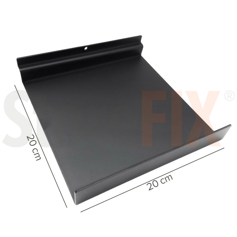 Las bandejas metálicas StoreFIX para panel ranurado son accesorios resistentes y prácticos para exhibición en tiendas, retail y showrooms.