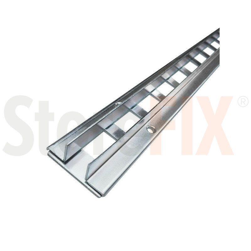 Producto Zincado, formato T con el paso ancho. Riel de instalación especifica.